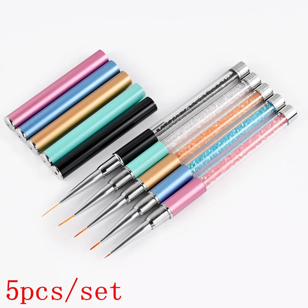 5pcs Premium Nail Art Liner Brush Set - Ultra-Fine Detailing Pens For Precision Manicure 6/9/12/15/26mm Long Line Nail Brushes *
