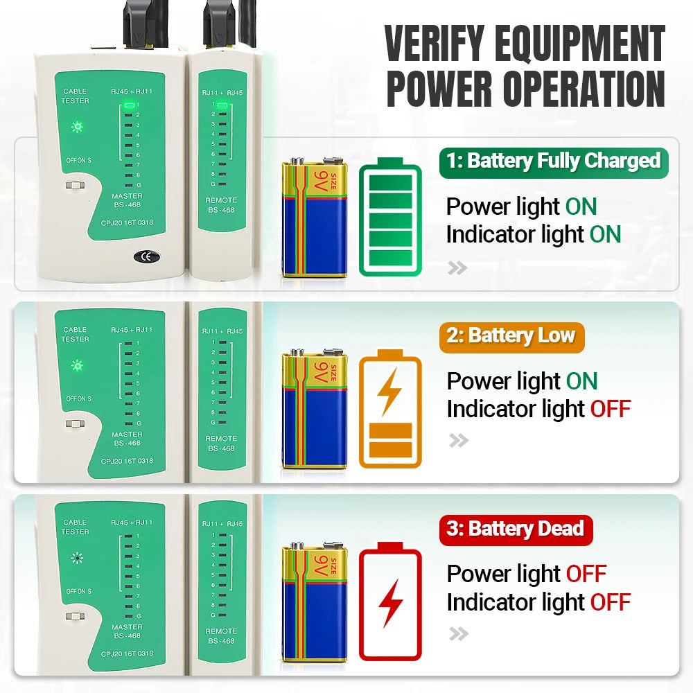 Package included:1 x Network Cable Tester and 1 x Instruction manual. 18 months warranty
