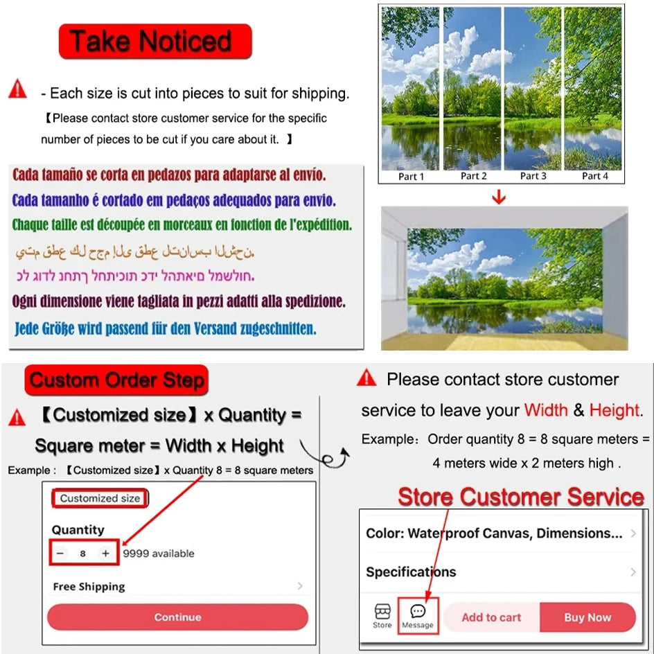 Meanwhile mark your detail wall width & height below the order or leave us a message.