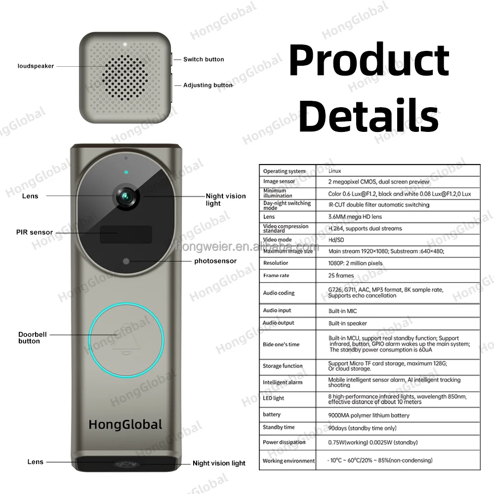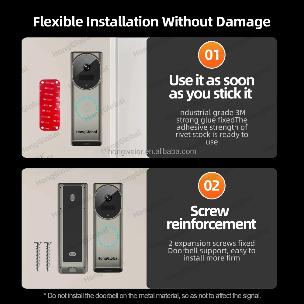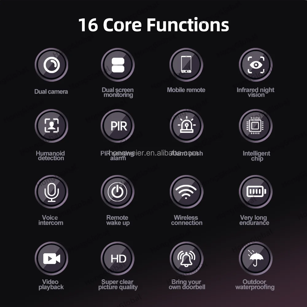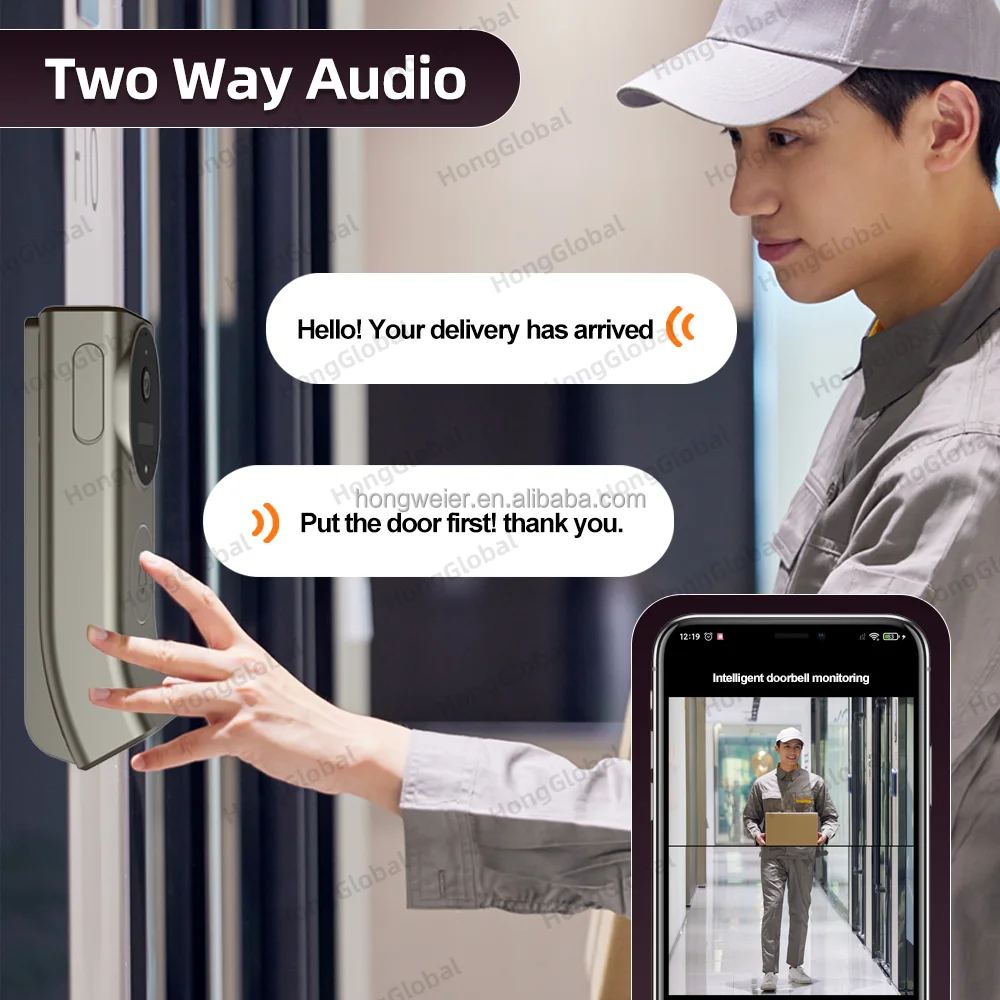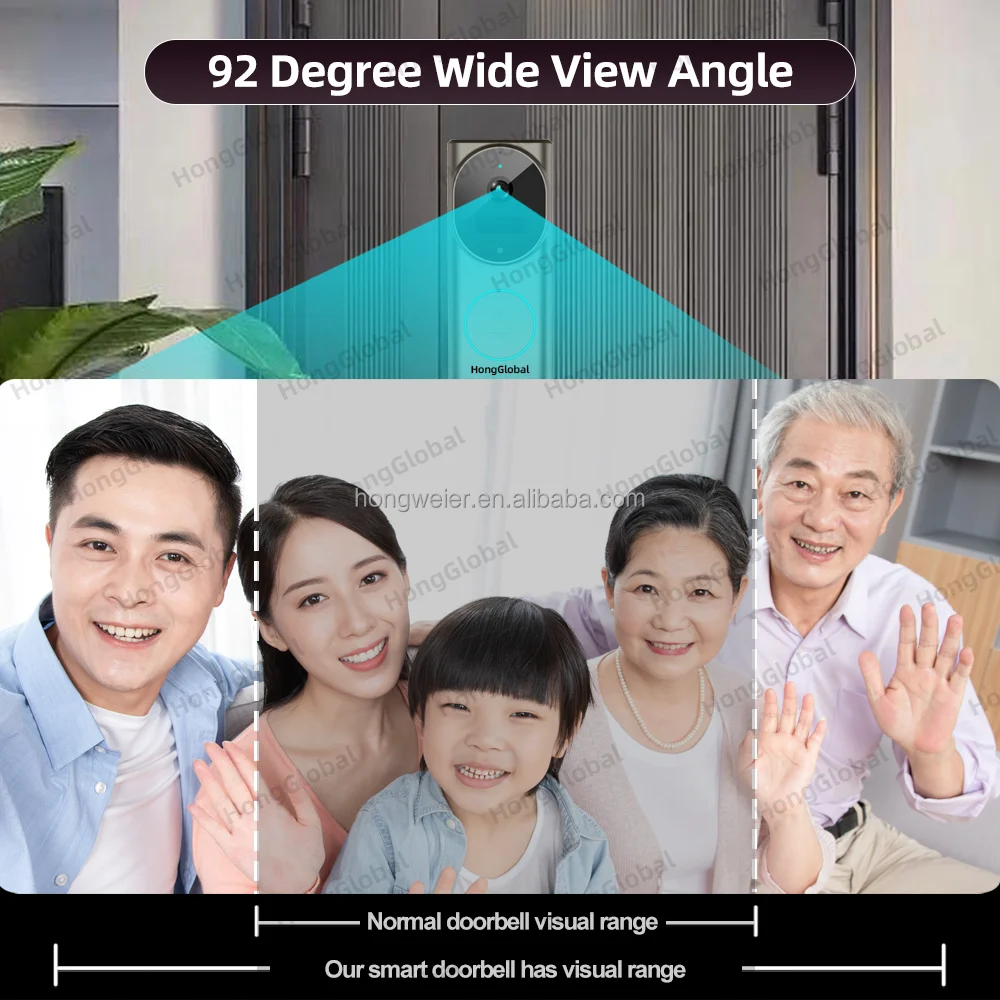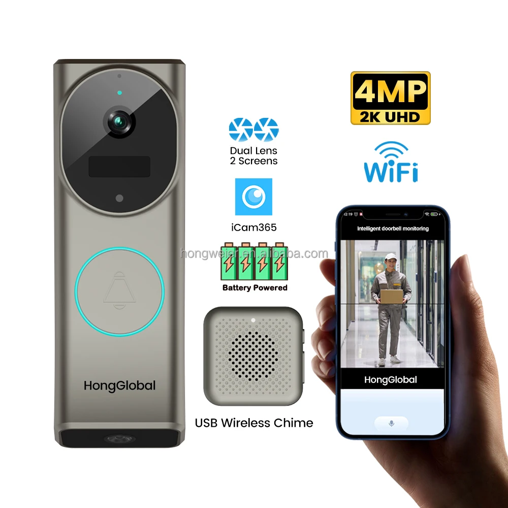 HongGlobal 4MP Home Doorbell Surveillance Security Ring Door Bell Camera ICam365 IP Dual Lens WiFi Smart Wireless Video Doorbell