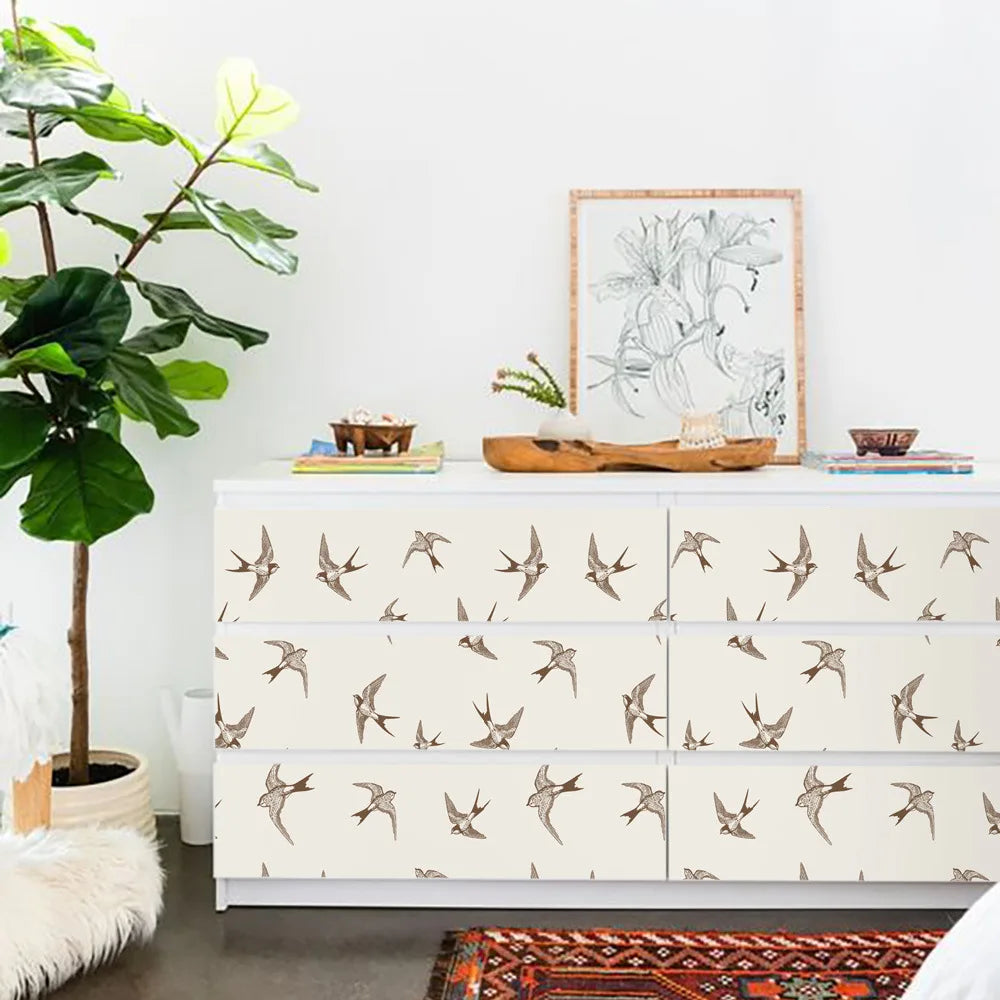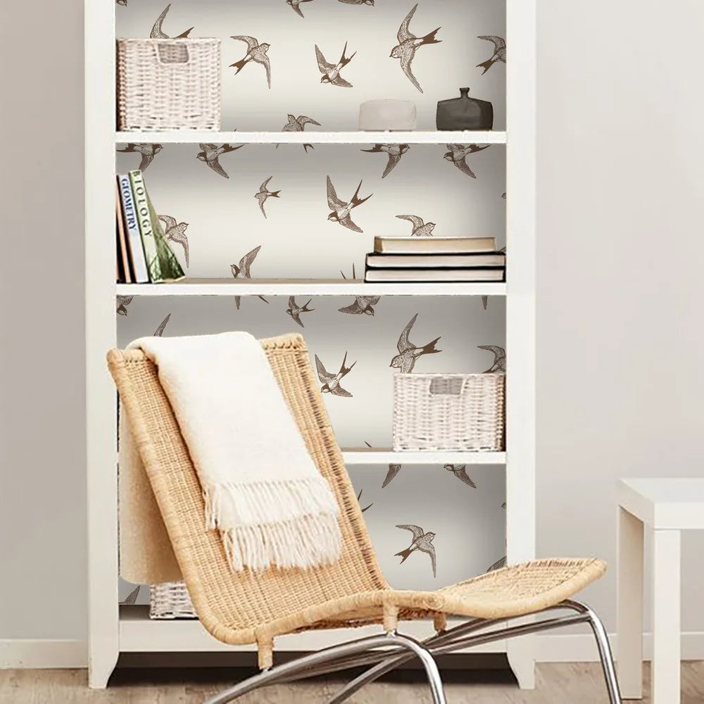 Light Creamy Wallpaper Swallow Bird Waterproof Self-Adhesive Contact Paper for Bedroom Closet Drawer Dresser Home Decor
